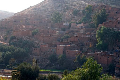 أبي إبراهيم المدفون بقرية تامصلوحت على نصف مرحلة من مراكش، والقرية المذكورة خالية متعطشة لا ماء بها، وكان والدي في جملته، فالتفت إليه الشيخ وقال له: يا عبد الله هذا موضعك وإن الله يحيي عمرانه على يديك، فانزل بأهلك وولدك.. قال فارتحل والدي وليس معه أحد إلا أنا وأمي وبقرة واحدة وتلّيس على عاتقه لفراشه، فنزلنا بتامصلوحت والأرض خالية مقفرة لا أنيس بها، فاستوحشت أنا وأمي وقلت هذا تغريز..” (ص: 95-96)…